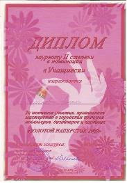 Диплом II степени лауреата городского конкурса модельеров, дизайнеров и портных "Золотой напёрсток"